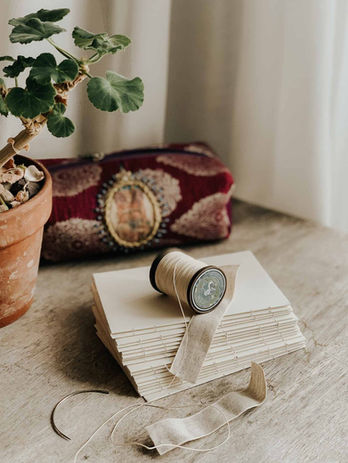 She founded Lotus Blu as a way to preserve history, legacy, and the stories of generations past, honouring them through tangible, handcrafted works while celebrating the present. From her home studio and bindery in the Lake District, England, she creates pieces that tell tales through texture and touch. Specialising in one-of-a-kind, meaningful journals, Moneeza repurposes vintage textiles and uses sustainable, tree-free paper such as hemp, bamboo, and cotton rag.